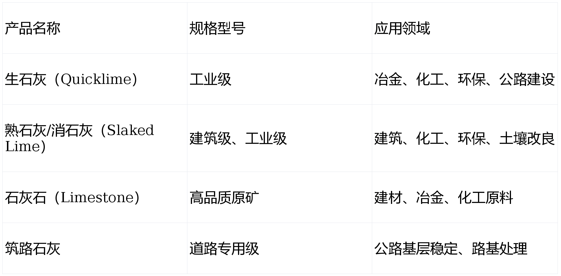 - 工业级生石灰:氧化钙含量高,活性好,反应迅速,是冶金、化工行业的理想选择