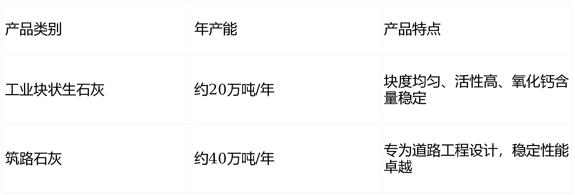 - 筑路石灰:专门用于道路基层稳定,有效提高路基承载力和耐久性